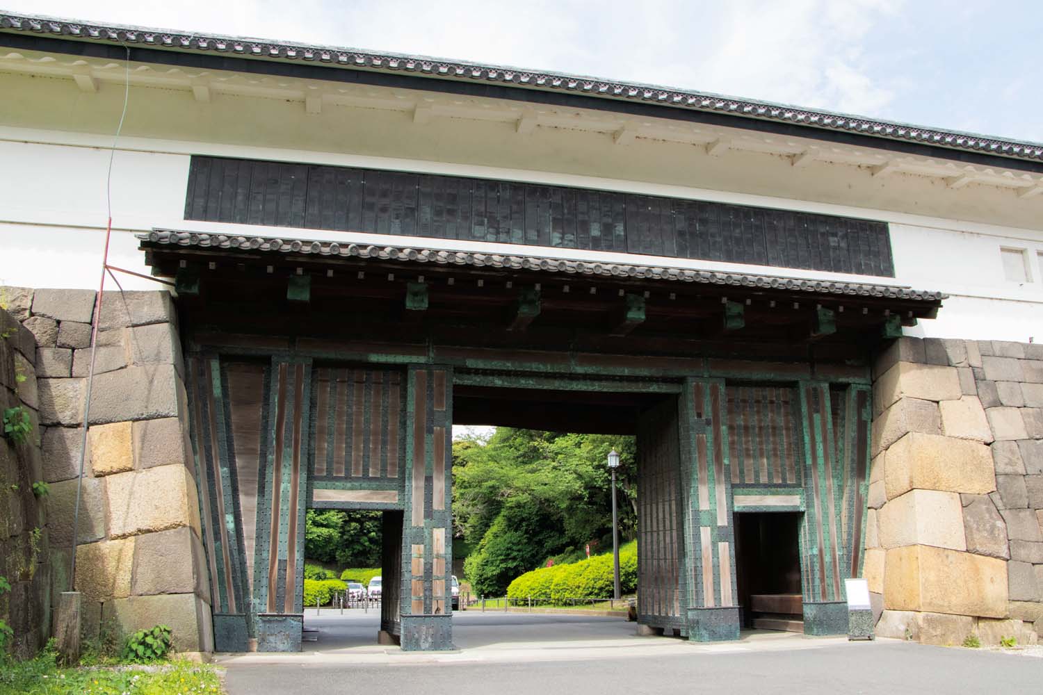 江戸城北の丸北部に位置する枡形門。正門の高麗門と右手奥の櫓門からなる。江戸城が大城郭として完成した寛永13年(1636)に建てられたものといわれ、現存する江戸城最古の門。