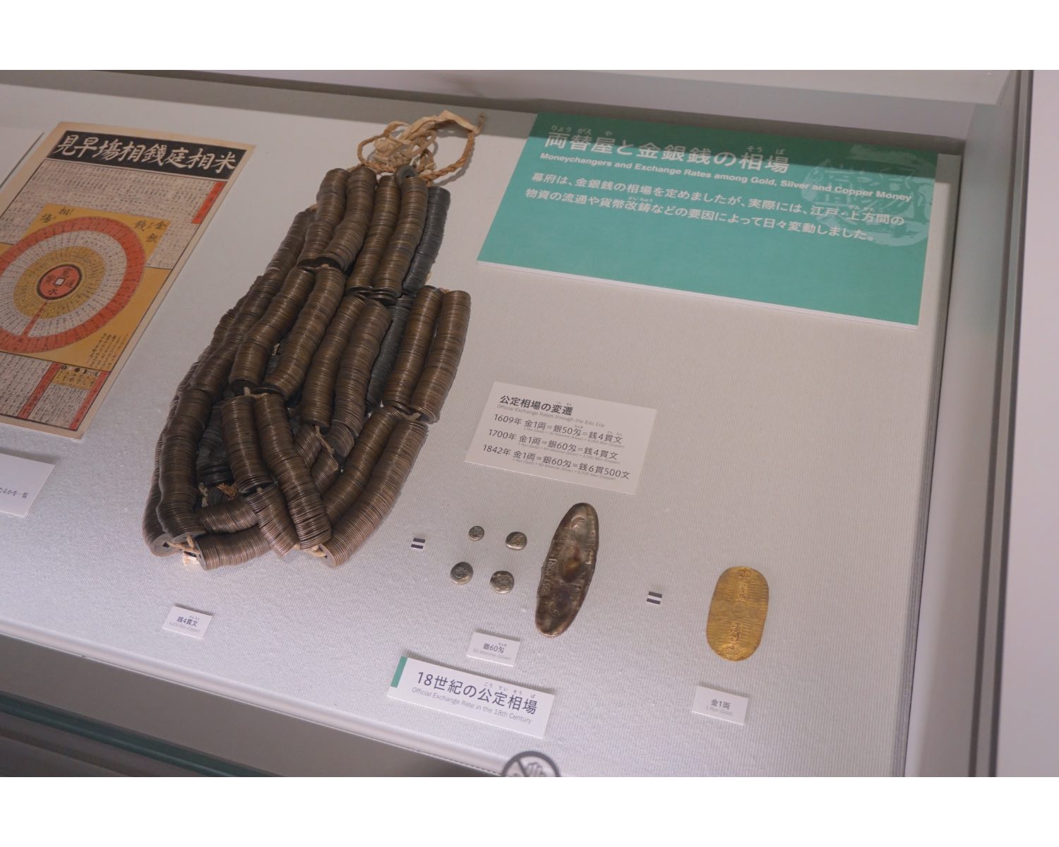 こうして、金貨・銀貨・銭貨という3種類の貨幣が国のお金として発行され、流通することになりました。「三貨制度」と呼ばれるこのシステムは非常に複雑で、金1両=銀60匁=銭4000文(18世紀の例)といった具合に幕府が定めた公定相場はあったものの、実際にはさまざまな要因により日々変動していたのだそう。