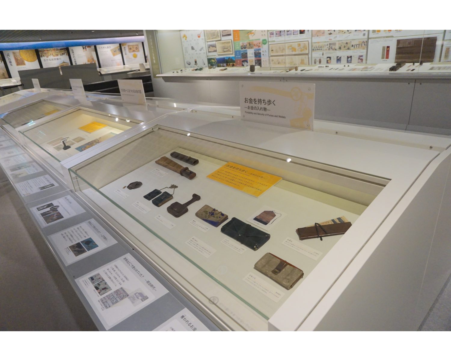 取材時には、当時の財布も展示されていました。中には木製のものも。お金の形状がさまざまだったこともあってか、財布の形状や素材は現代より遥かに多様です。