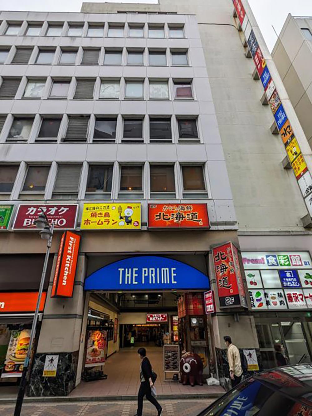 目指すは南口から歩いてすぐの「ザ・プライム」ビル。たまりませんね、この昭和ヨロシクのシブい造り。