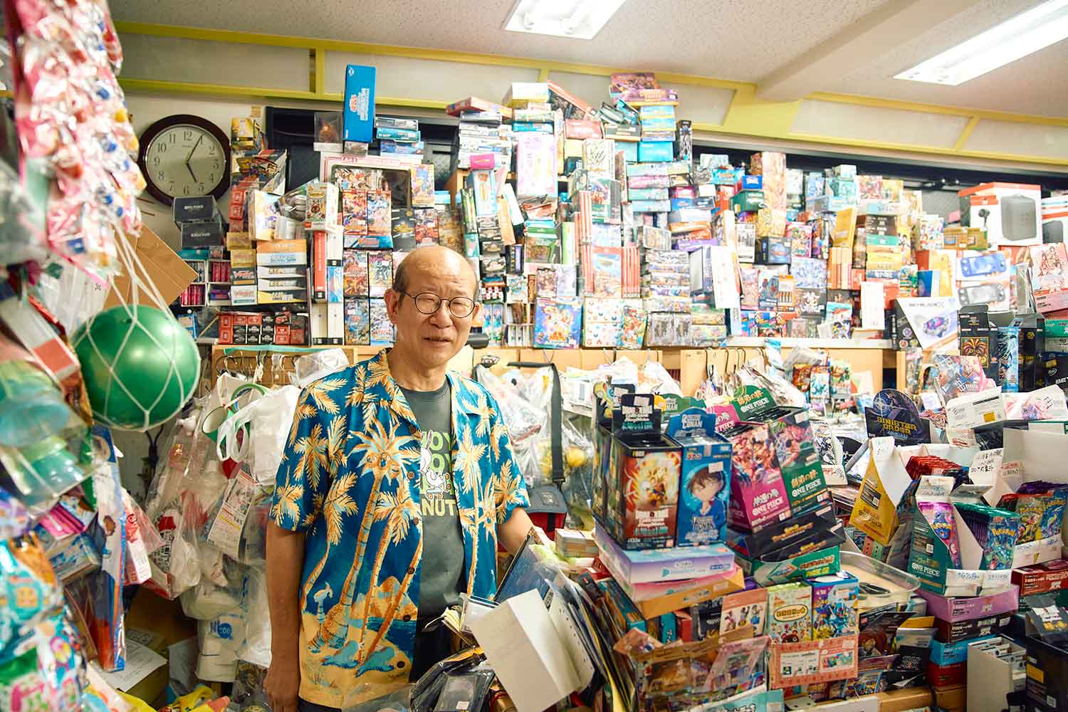 子供たちが店先で夢中にバトルする光景は、在りし日の遊び場的な雰囲気を思い起こさせる。かつて射的の的を並べて子供たちを集め、今はカード大会やベイブレードで熱狂を生み出す。変わらないのは、この店がいつの時代も子供たちの遊び心を受け止めてきたという事実だ。