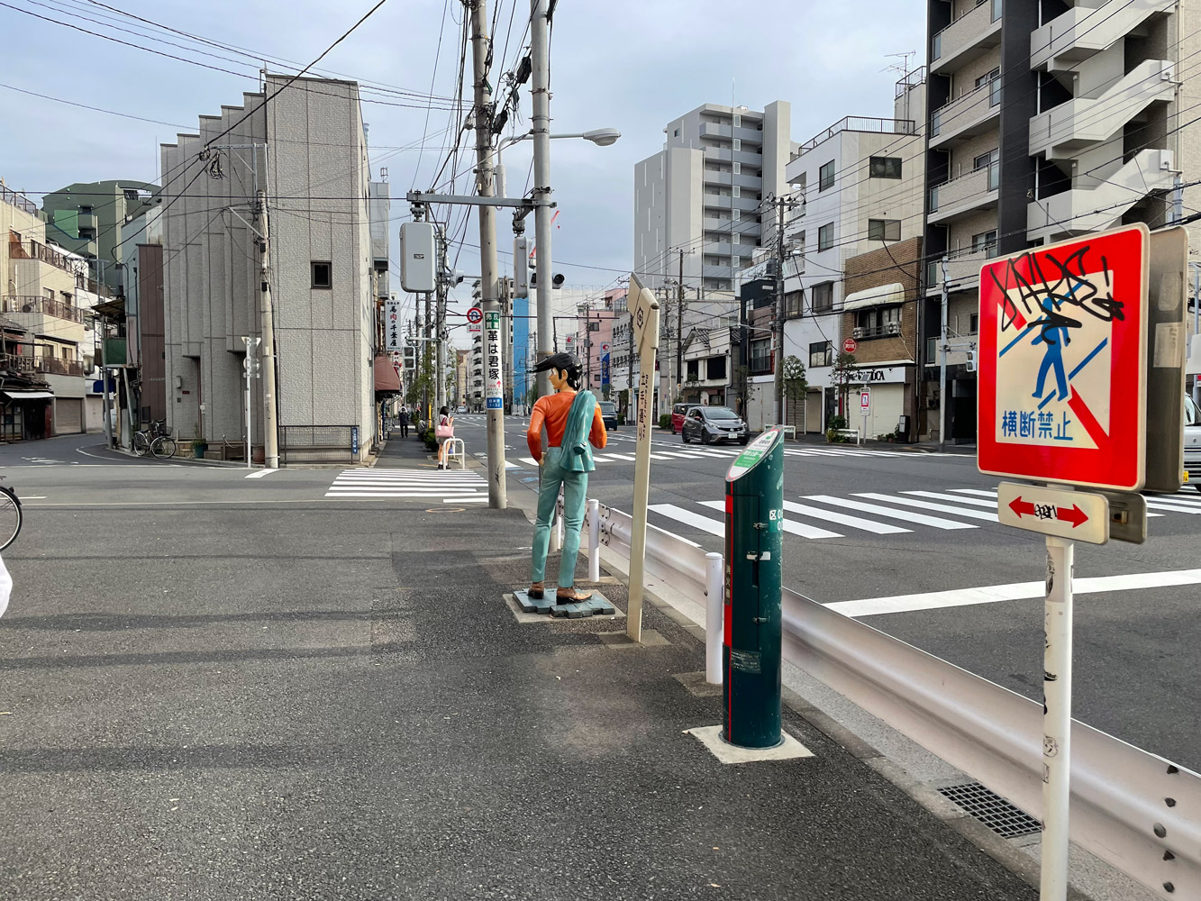 そのまま土手通りを進むと突然、視線の先に漫画『あしたのジョー』の主人公・矢吹丈が現れる。このフルカラー着彩の矢吹ジョー像、正式名称を「立つんだ像」と言うらしい。葛飾区の『こち亀』や『キャプテン翼』のキャラクター像のように、台東区でも矢吹ジョーの他にマンモス西や金竜飛、カーロス・リベラの像も建てたらいいのにと一瞬思ったが、浅草周辺にこれ以上観光資源を増やす必要はないことに気づいた。