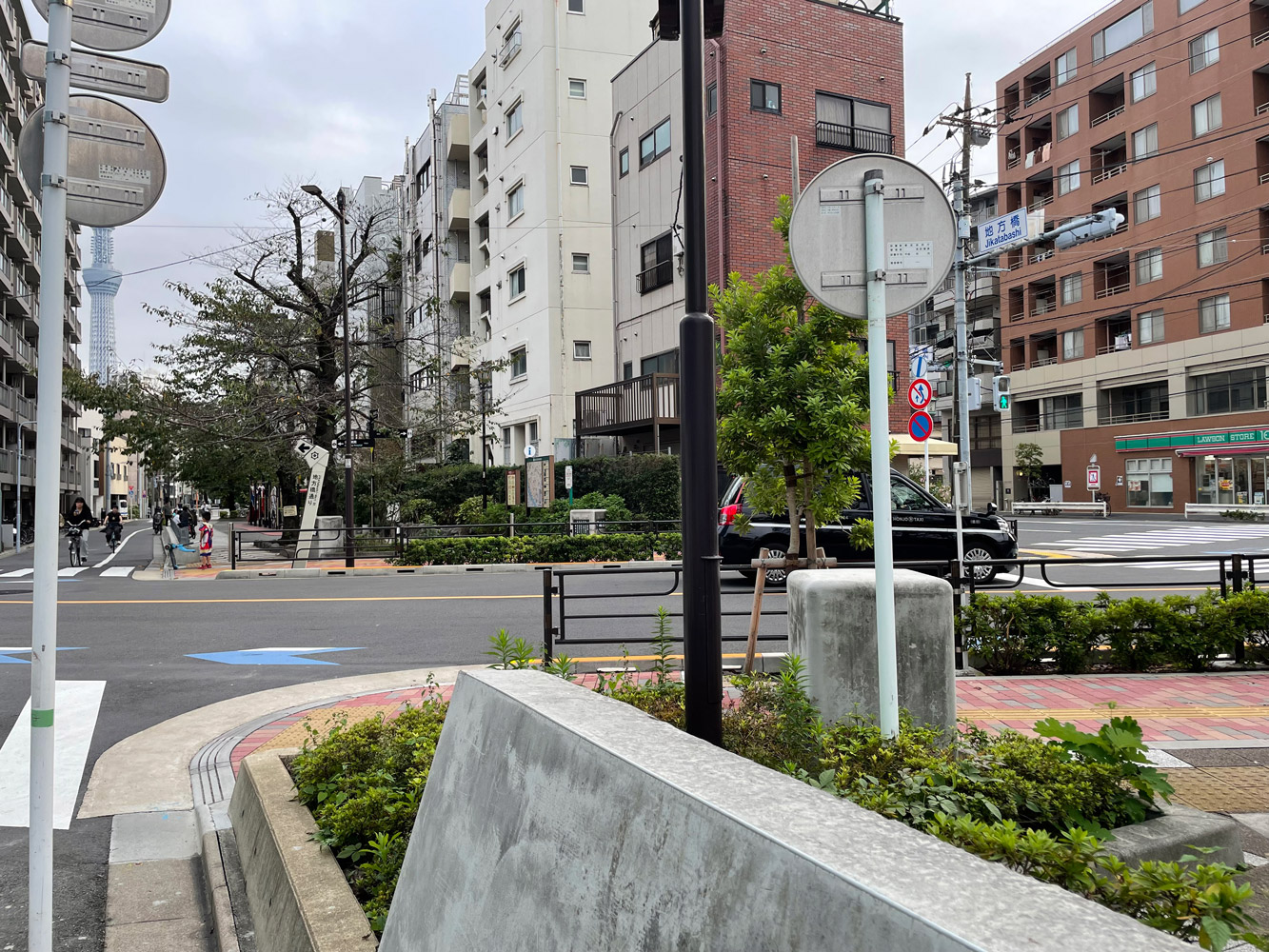 橋場通りの向こうに山谷堀広場が広がる。山谷堀公園からまっすぐ渡って行けるといいのだが、待乳山の方にある横断歩道まで歩かなければならないのが少々億劫だ。堀の跡に沿って歩いてきたせいか、せっかくなら最後まで堀の上を進みたいという気持ちが芽生えてくる。