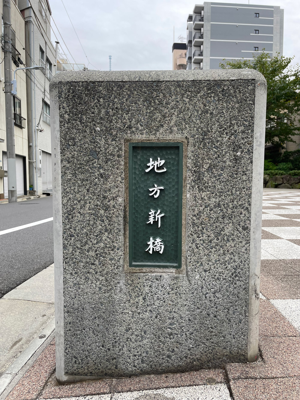 日本堤橋の遺構らしきものからさらに南に進むと、公園として整備されて残る山谷堀の最初の橋、地方橋の親柱が立つ。