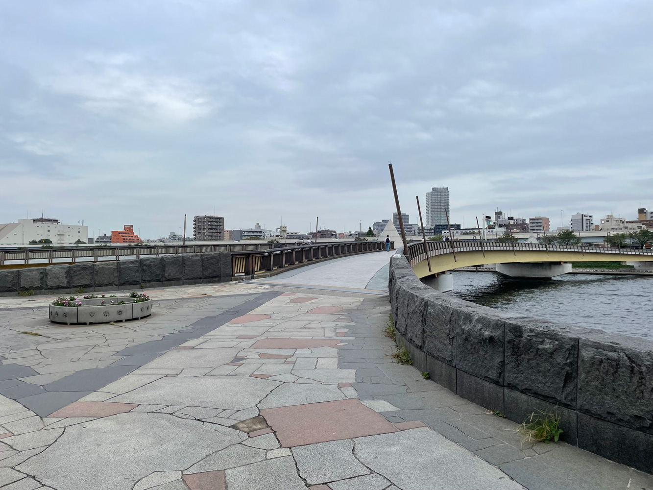 少し下流の吾妻橋はいかにも観光地の橋といった感じで、対岸のアサヒビール本社ビルやフィリップ・スタルクの金のオブジェ、その向こうのスカイツリーを撮影する観光客の姿をよく見かけるが、言問橋を挟んでさらに上流にある桜橋は、もう少し日常の橋の姿をしていると感じる。自転車で向島の方から来る/へ向かう親子、ランニングをする人、サンダル履きのおばちゃんやおっちゃん、犬を散歩させるおじいちゃん、橋の上にいるほとんどが近所を出歩く時の格好だ。時折その横を観光客の振る舞いをする人が通り過ぎる。その塩梅が良い。