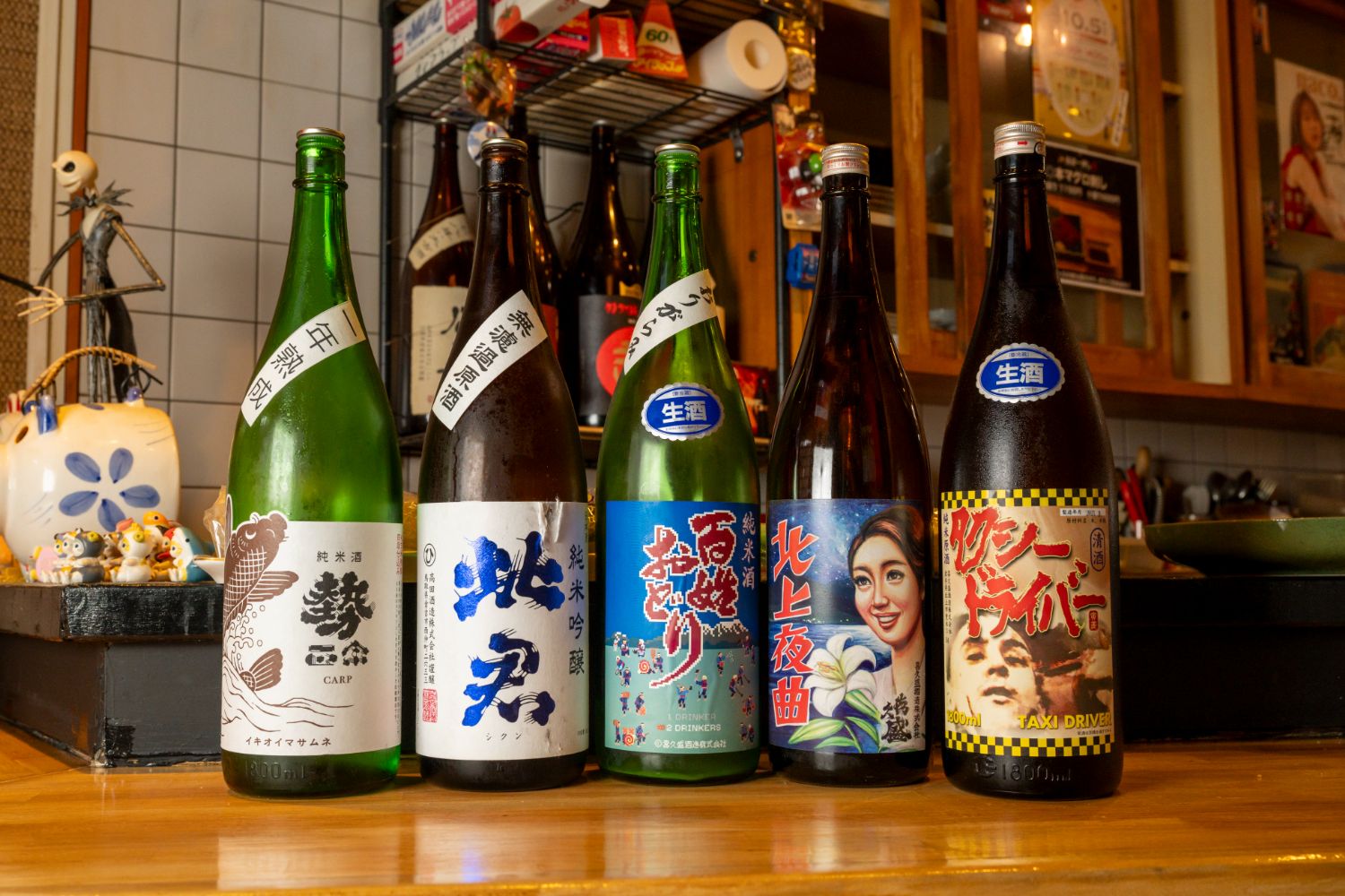 喜久盛の地元向け銘柄のほか、長野の「勢正宗」や「和饗」、鳥取の「此君」など、冷やから燗までうまい酒が主。価格は90ml550~830円程度。兵庫の「都美人」の出汁割り950円も。仕入れは『こだま』と足立区の『酒のあづまや』。