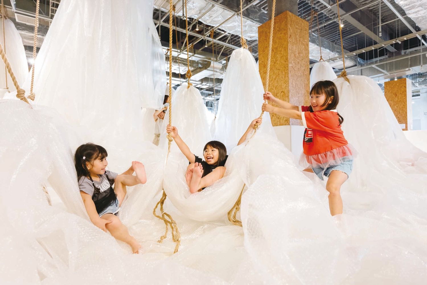 物語の中に入り込んでいくような体験ができる「MUSEUM」と、緩衝材や布などを使った屋内の遊び場「PARK」からなる施設。子供たちの自由な発想を育む場!