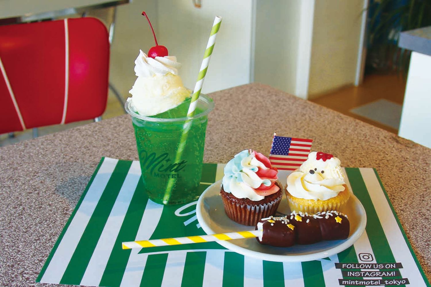 1950年代のテイストを加えたモーテルスタイルのカフェ。アメリカ直輸入のマシーンで焼くワッフルや手作りのカップケーキが人気。オリジナルグッズも販売。