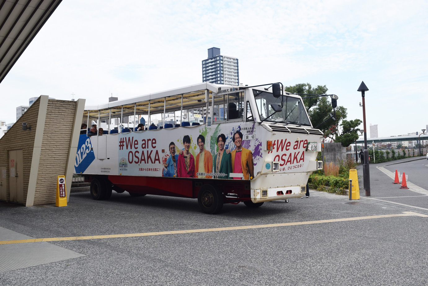 日本水陸観光が運営するダックツアーがスタートしたのは2006年のこと。当初はアメリカで製造された車輛を使っていたが、後に国産車に切り替え、現在では、大阪の他、栃木県の「湯西川ダックツアー」、長野県の「諏訪湖ダックツアー」も運行しているという。