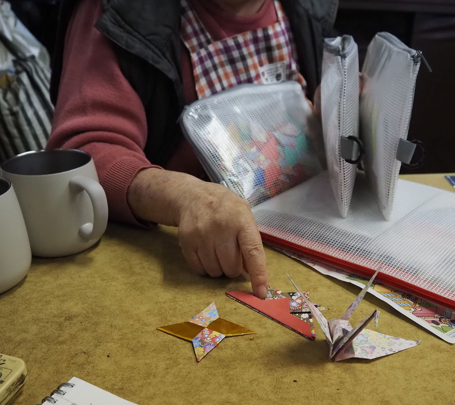取材の終わりに、女将さんは、色とりどりの小さな紙をたくさんテーブルに出した。折り紙だった。折り鶴、奴さん、こういうものをこしらえておく。最近は、外国人観光客が食べにきて、帰り際に小さな作品をプレゼントすると、本当によろこんでくれるのだと。