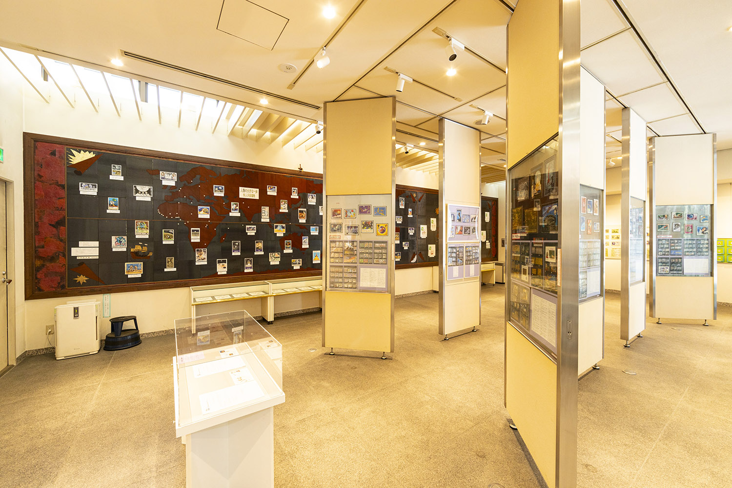 1996年に開館。約35万種類もの国内外の切手が収蔵される。展示はテーマに合わせて年4回入れ替え、現在は「魅惑のキノコ」展を開催。ルーペやライトを借りてじっくり観賞したら、無限のデザインを思い知る。2階では世界初と日本初の切手ともご対面。使用済み切手で貼り絵や、切手を買う楽しみも! 入館料200円(毎月23日は「ふみの日」で無料)。