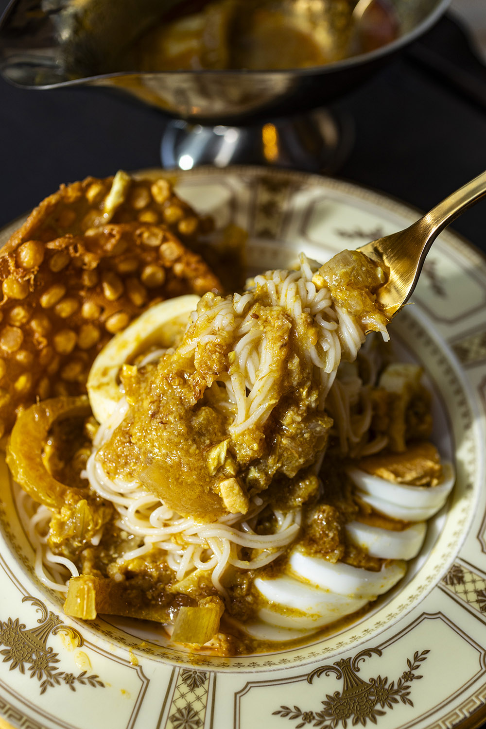 2025年8月に開店したミャンマー料理専門店。民族衣装姿のスタッフに迎えられ、カフェのような洗練された店内で堪能できるのは、本場のシェフが手がける国民食のモヒンガー、シーフード焼きそばのミェイ・カッチー・カィー、ひよこ豆で作る豆腐(トーフ)など、さまざまな地方の料理。素朴でなじみやすい味わいで、辛さは自分で調節するのがポイント。