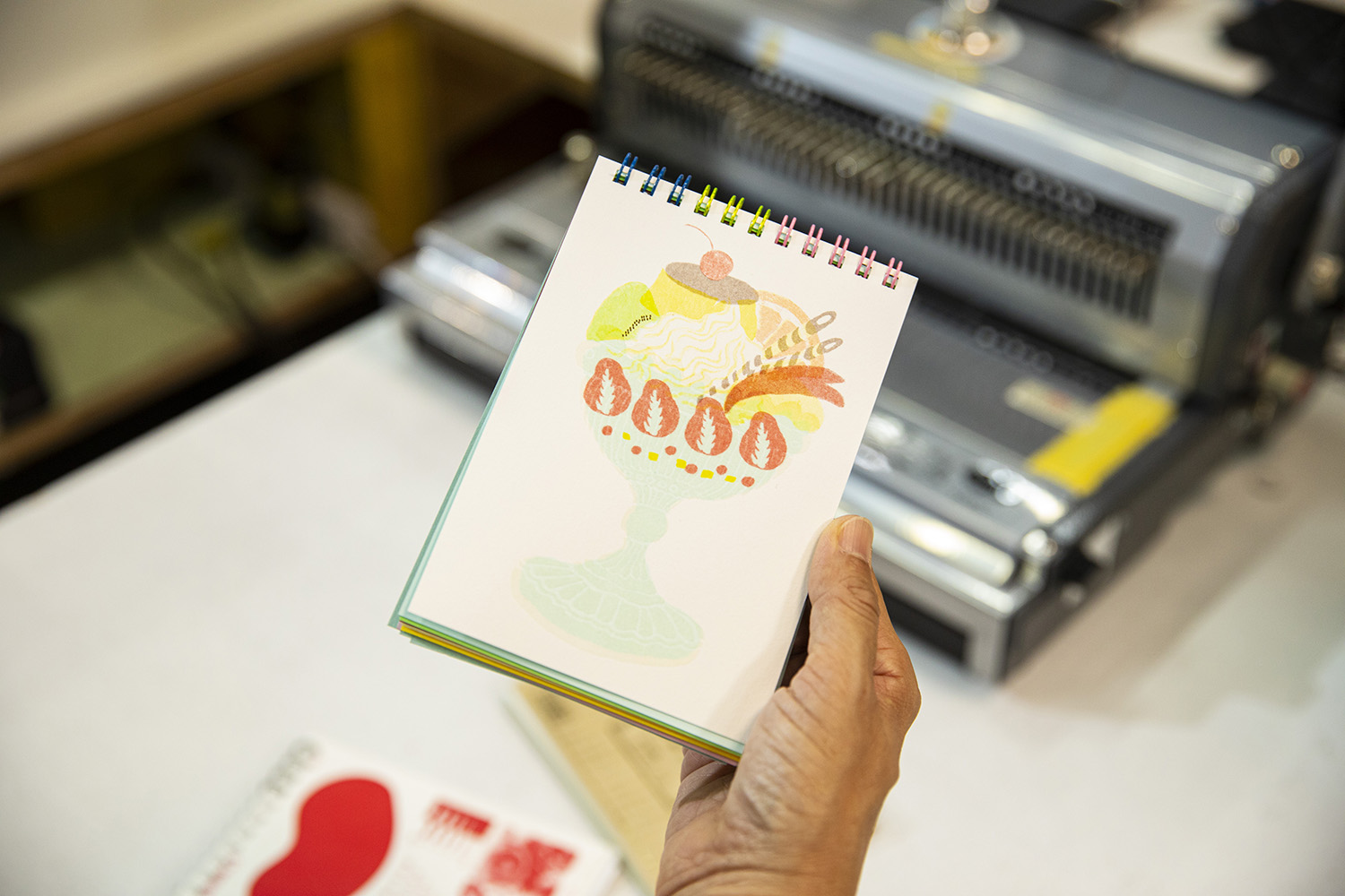 メッシュ状の版の孔にインクを通して印刷するシルクスクリーンを体験できる作業場付きショップ。印刷用の布製品や紙、インクが買えるだけでなく、リソグラフによる絵はがきやポチ袋などの紙雑貨も豊富に揃う。ムラやカスレ、色重ねの面白さ、レトロな風合いがたまらない。紙とリングを選べる予約不要のリングノートづくりもぜひ。