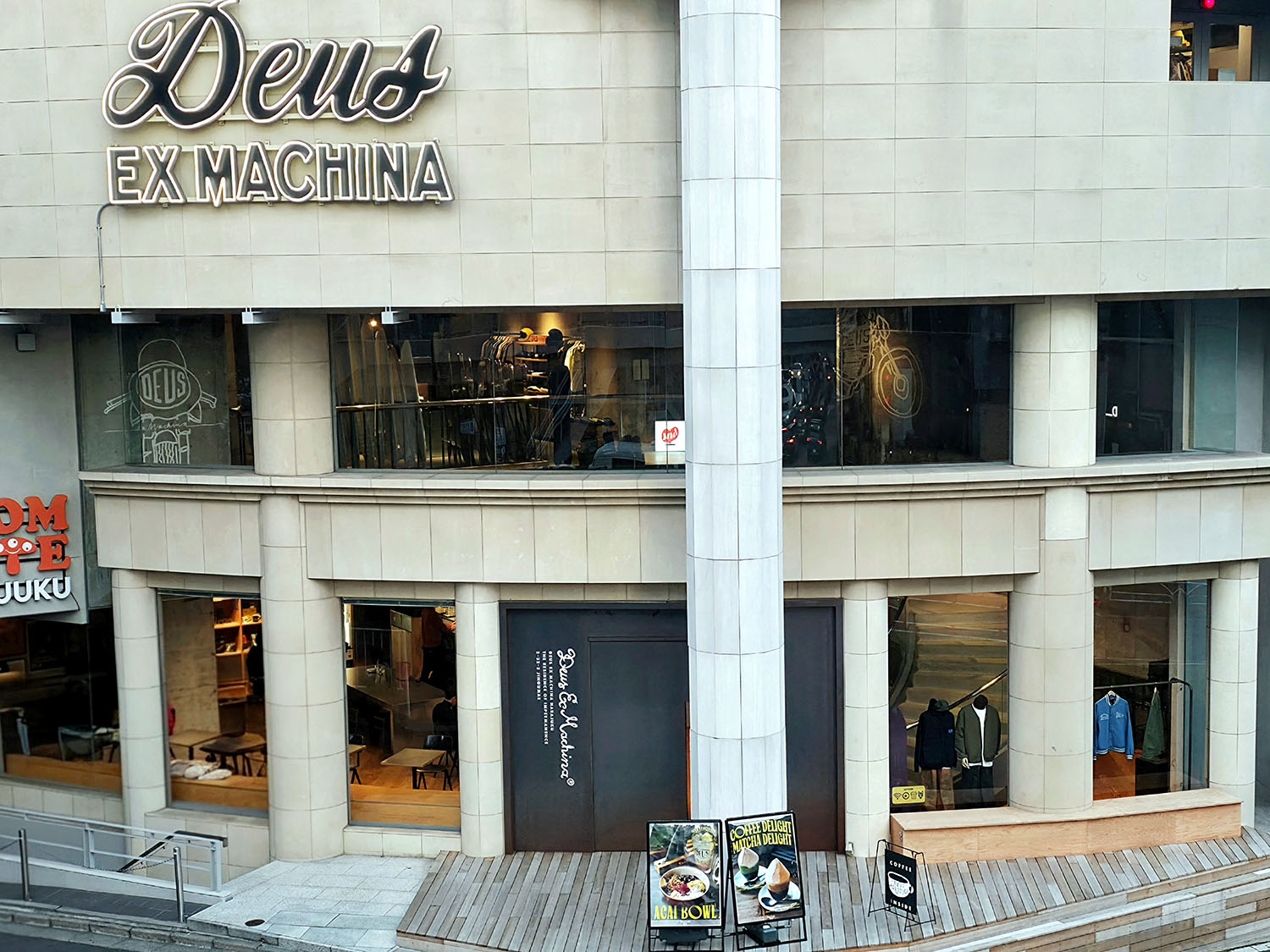 原宿警察署前の交差点そばにある『Deus Ex Machina Harajuku(デウス エクス マキナハラジュク)』。
