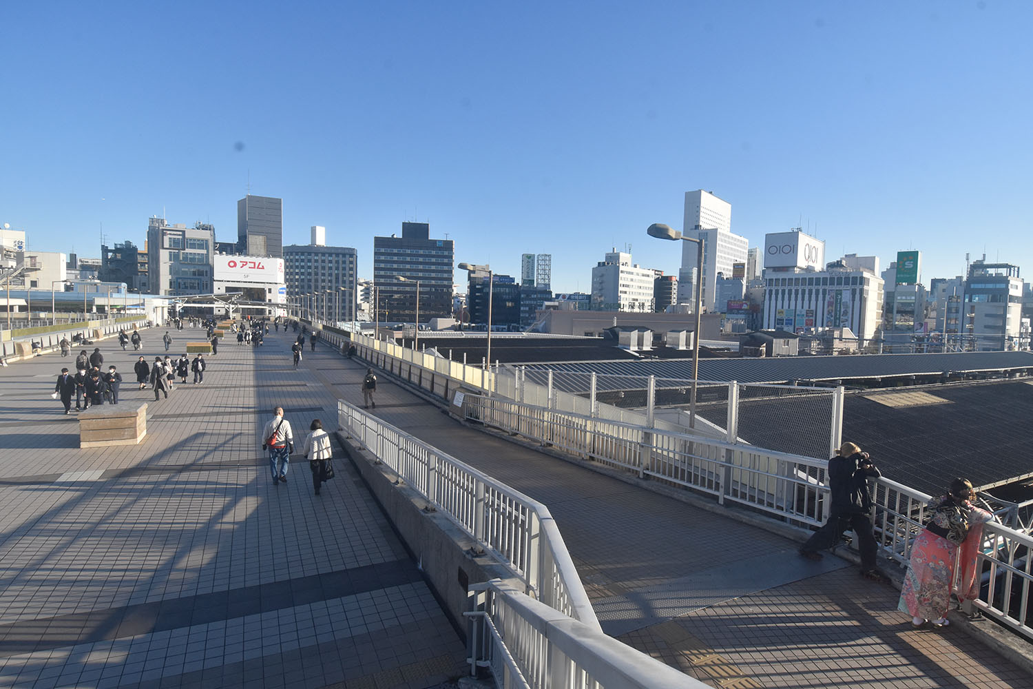 下谷神社から上野公園に向かうには、JR上野駅を越えなければならない。その手前にも大きな通りがあるので、歩道橋を使い、一気に公園を目指すのが便利。上野駅の上には、手前の歩道橋よりさらに高さがある橋が架かっていて、「パンダ橋」と名付けられている。この橋を渡れば、東京の空も、思った以上に「青くて広い」と実感できるはずだ。