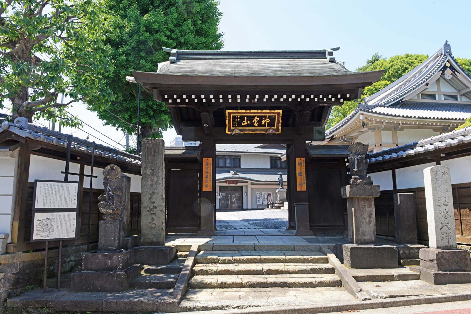 弘仁元年(810)に創建されたと伝えられ、徳川3代将軍家光をはじめ、歴代将軍家の崇敬を受けて栄えた。曲尺(かねじゃく)、算盤(そろばん)、枡、天秤など度量衡の紋様が描かれた梵鐘が珍しい。