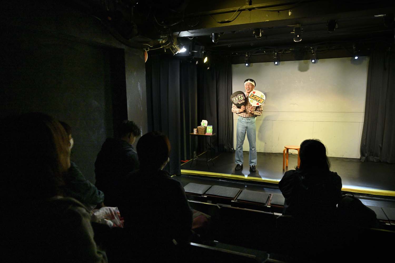 早速、狭い階段を上がると、日がな一日お笑いが見られる小さな劇場が口を開けていた。毎時ジャストのオープニングトークに始まり、芸人が入れ替わり立ち替わり登場して、毎時50分ごろのエンディングトークでひと区切り。1日に平均3〜5回の出番で毎回ネタを替える芸人が多く、たとえ初見が微妙でも、次で腹をよじることもあって、1回転だけ見て帰るなんてもったいない!