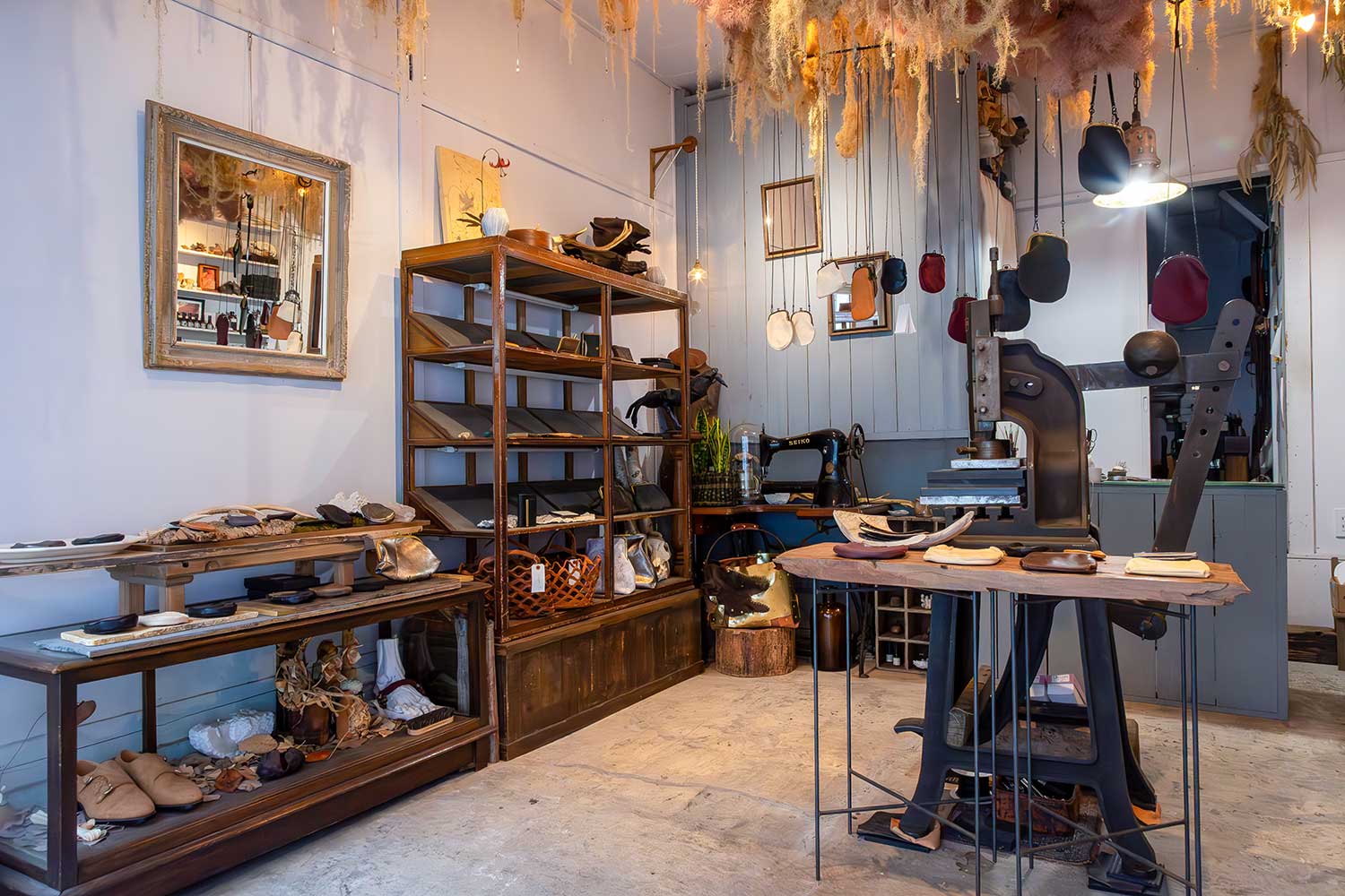駆除のために仕留められた獣の肉は食用として活用されることもあるが、皮はすべて産業廃棄物になる。そんな事情を知り、「捨てられる命をなんとか生かしたい」と、革ブランドSix COUPDE FOUDRE代表の高見澤篤さんは、猟師から皮を引き取って加工し“ジビエ革”と名付け、バッグや財布などのプロダクトとして再び命を吹き込むことに。『と革 TO-KAWA』は、その工房兼ショップ。