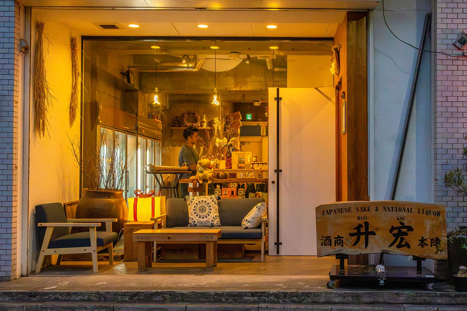 老舗だってチャレンジング。創業61年の酒屋、『酒商升宏』は2017年に倉庫をリノベしておしゃれなショップに。ジャンクフード×日本酒、スイーツ×日本酒など、新しいペアリングを提案するイベントも開催する。
