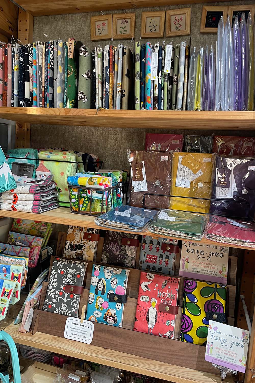 先ほどド〜ンとワッペンキーホルダーを押し出しまくりましたが、他にも店内には布の手作り雑貨がズラリ。
