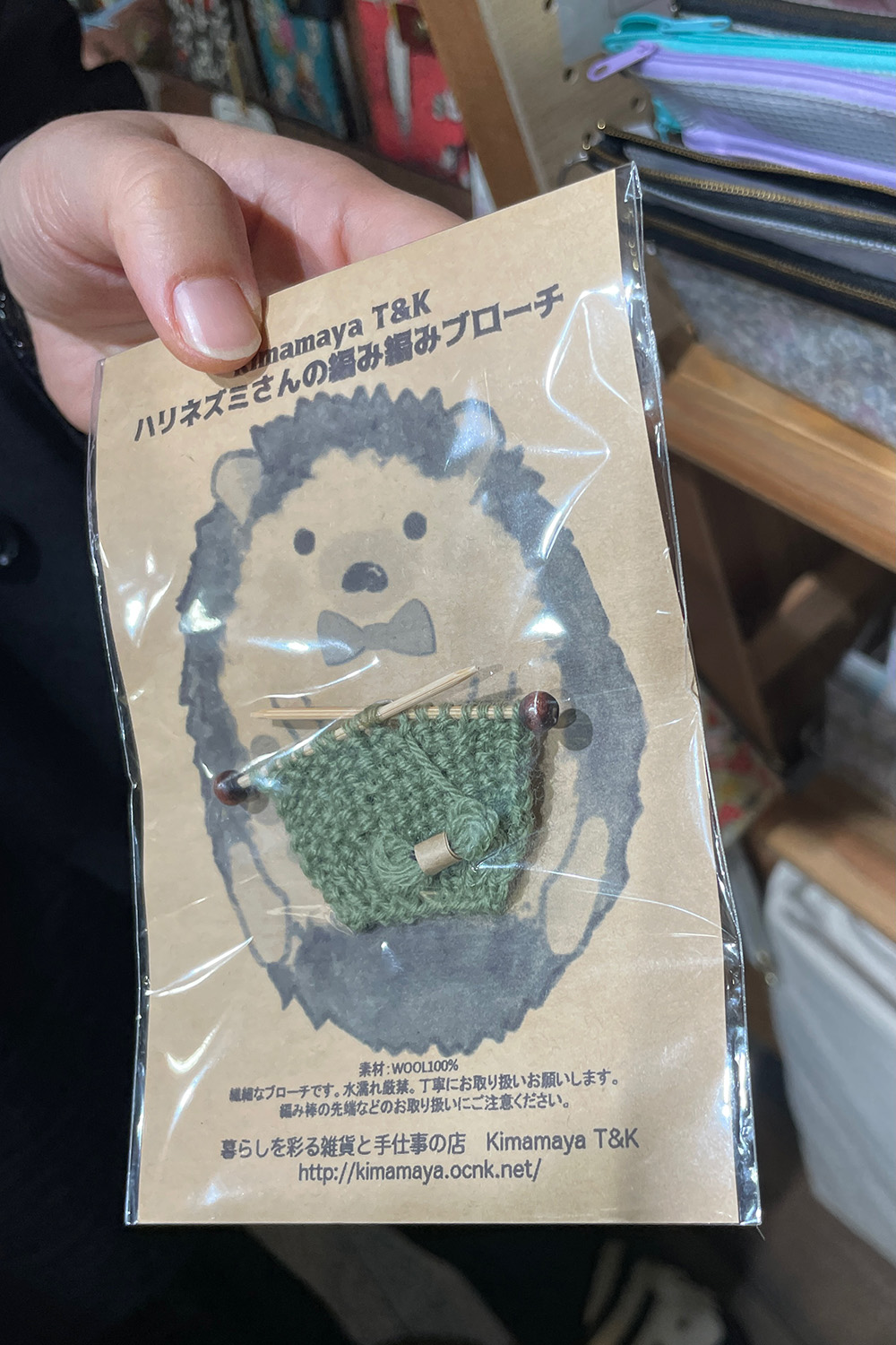 お二人の得意技を分担して生まれるグッズも多数。例えばこの「ハリネズミさんの編み編みブローチ」。