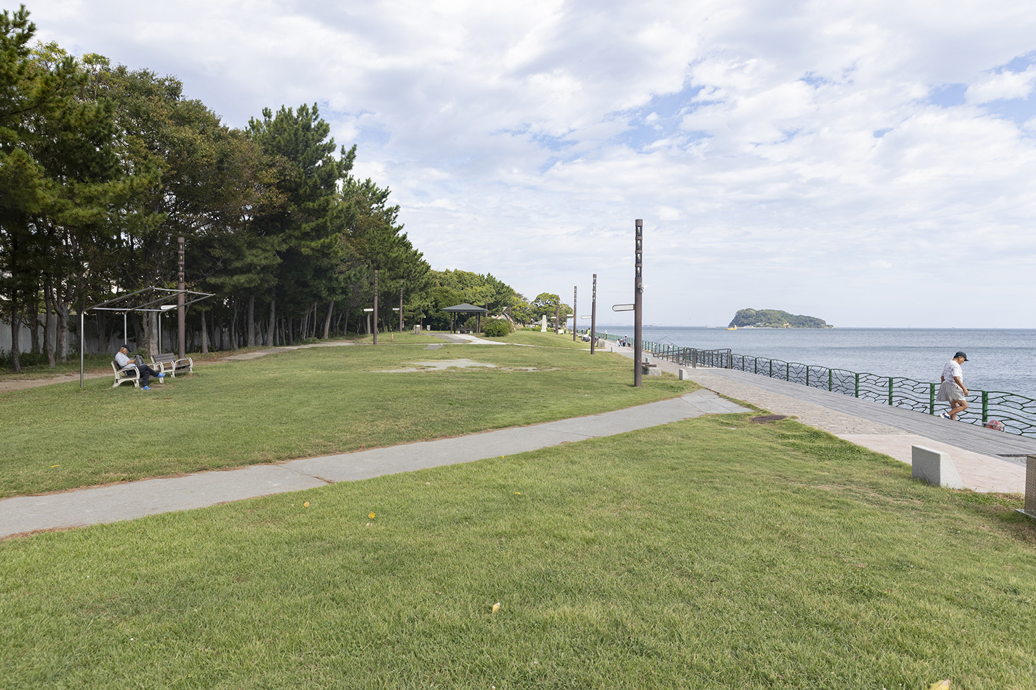 あの奥に見えるのは砲台跡の猿島か。自販機たくさんあるし、ゴミ箱も多い。凄くきれいに管理されてる。