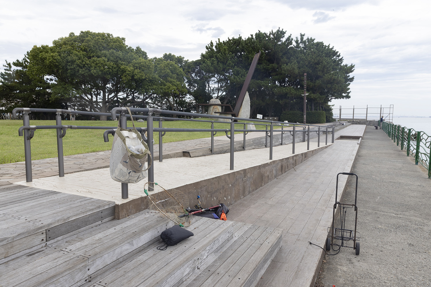 この公園ってさ、ドライブしてて「海辺つり公園ってのがある! 道具ないけどやってみちゃおうか?」って思いつきで寄ったりするの最高だろうね。釣り竿セット貸してくれんだもんね。まあレンタルするのはお金がかかるんだけどさ。そんで東屋もあるし、こうやって釣れるの待ってる間に座れる広いベンチもちゃんとある。