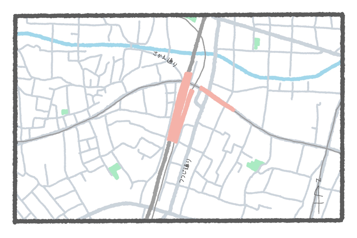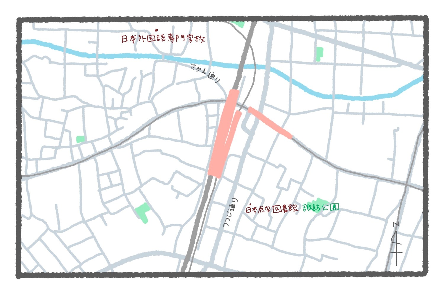 今回の地図のように南北方向に線路が走る部分が山手線には意外と多く、線路の向きは決定的なヒントにはなりづらい。駅東側にホームが並んでおり、その先で山手線の線路をくぐって西へ向かっていく形は、西武新宿線ユーザーならピンとくるポイントだったかもしれない。
