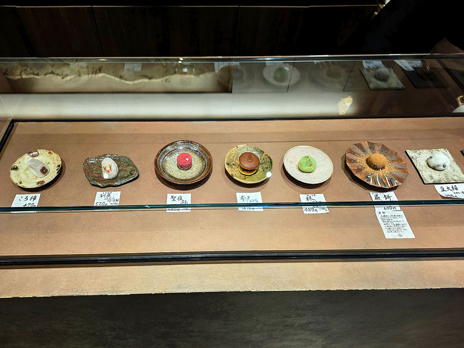 ショーケースに並ぶ生菓子。