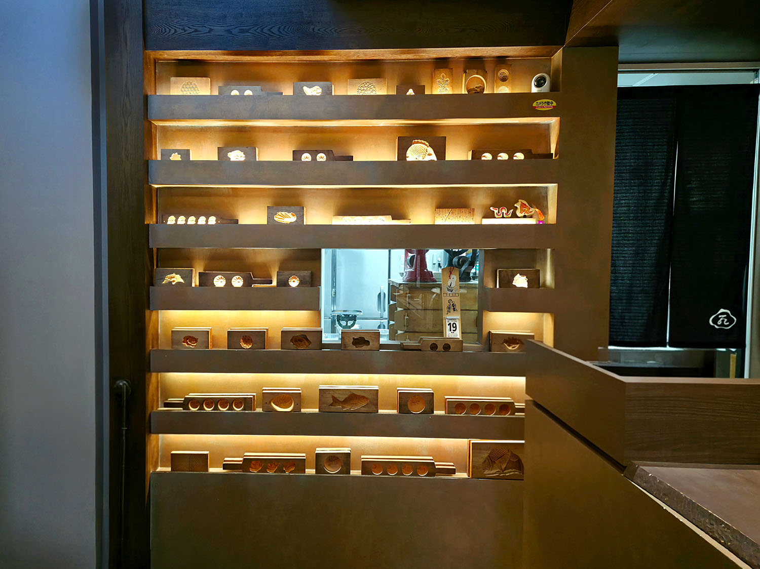 店内には、和菓子の木型も数多く飾られています。
