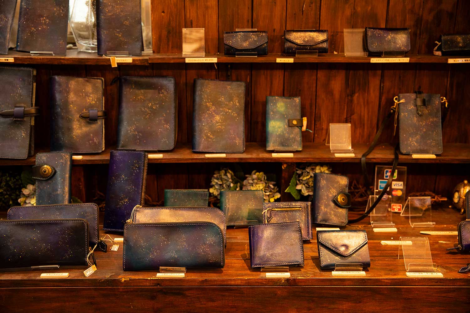 営業職、絵描き、デザイナーと異色の道を渡り歩いてきた店主の原田孝一さんは、2008年に奥さんと雑貨店を開業。以来、独学で革製品作りを体得し、今では専門店に。「ビビビと来るやつを作りたくてさ」と、止めどないアイデアを染色や縫いで表現する。ゆえに、店内並ぶ色とりどりの品はすべて一点モノ。軽やかなる原田トークをBGMに、お気に入りを見つけ出そう。