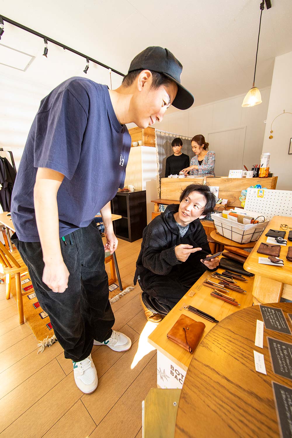 店いっぱいに革製品が並ぶ『MIKUMIKU』の原田孝一さんは「始めた頃は下手くそでさ。その頃に買ってくれたマダムたちは今、『本当にうまくなったわね』ってほめてくれる」とはにかむ。何その下町情緒。素敵すぎ。