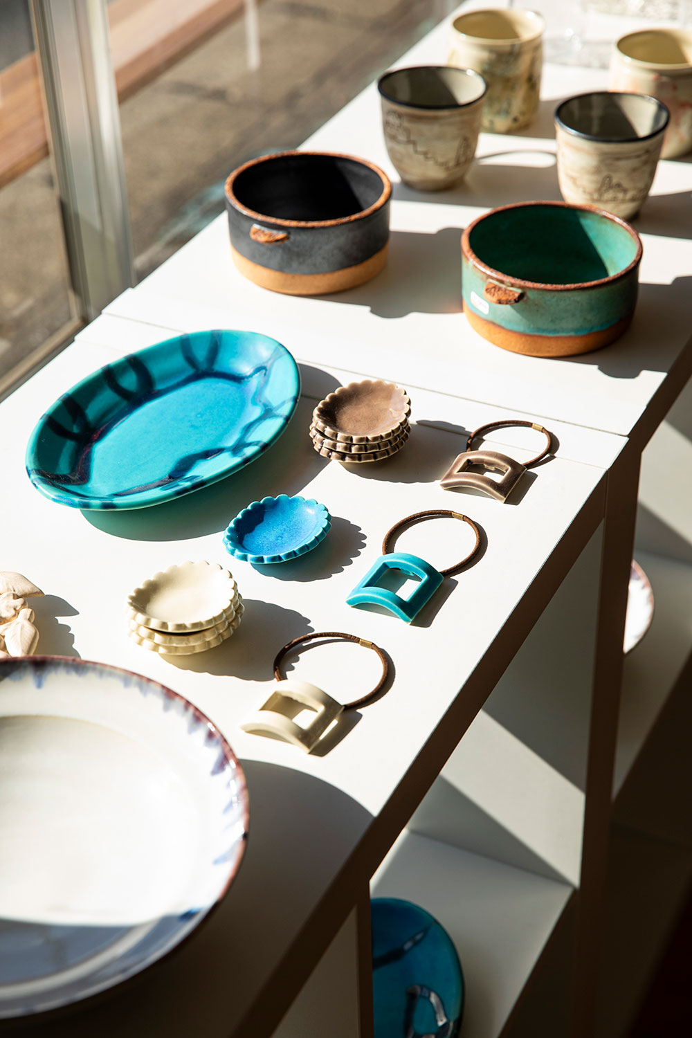 木製のカッターやトルコブルーの皿など、雑貨は手作り一点モノ。「老若男女幅広い人に」と、店主の龍木(りゅうき)夫妻がセレクトしている。他にもアーティストの展示をやったり、妻の麻菜(あさな)さんが女性専門リラクゼーションをやったり、夫の泰(やすし)さんが隣のベーグル屋でコーヒーを淹(い)れてたり。ええい、情報量が多いんじゃ! ワクワクするぜ。