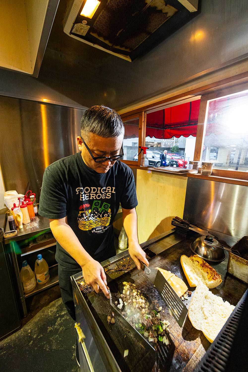 「意外と学生や単身者の入れ替わりは激しい」とは『FOODICAL HEROES(フーディカル ヒーローズ)』の高山真一さん。「新しく来た人には、『何かあったら力になるから』と伝えてます。きっと、不安なことも多いと思うから」。看板のチーズステーキサンドはもちろん、この人情味の虜(とりこ)になる人は数知れない。