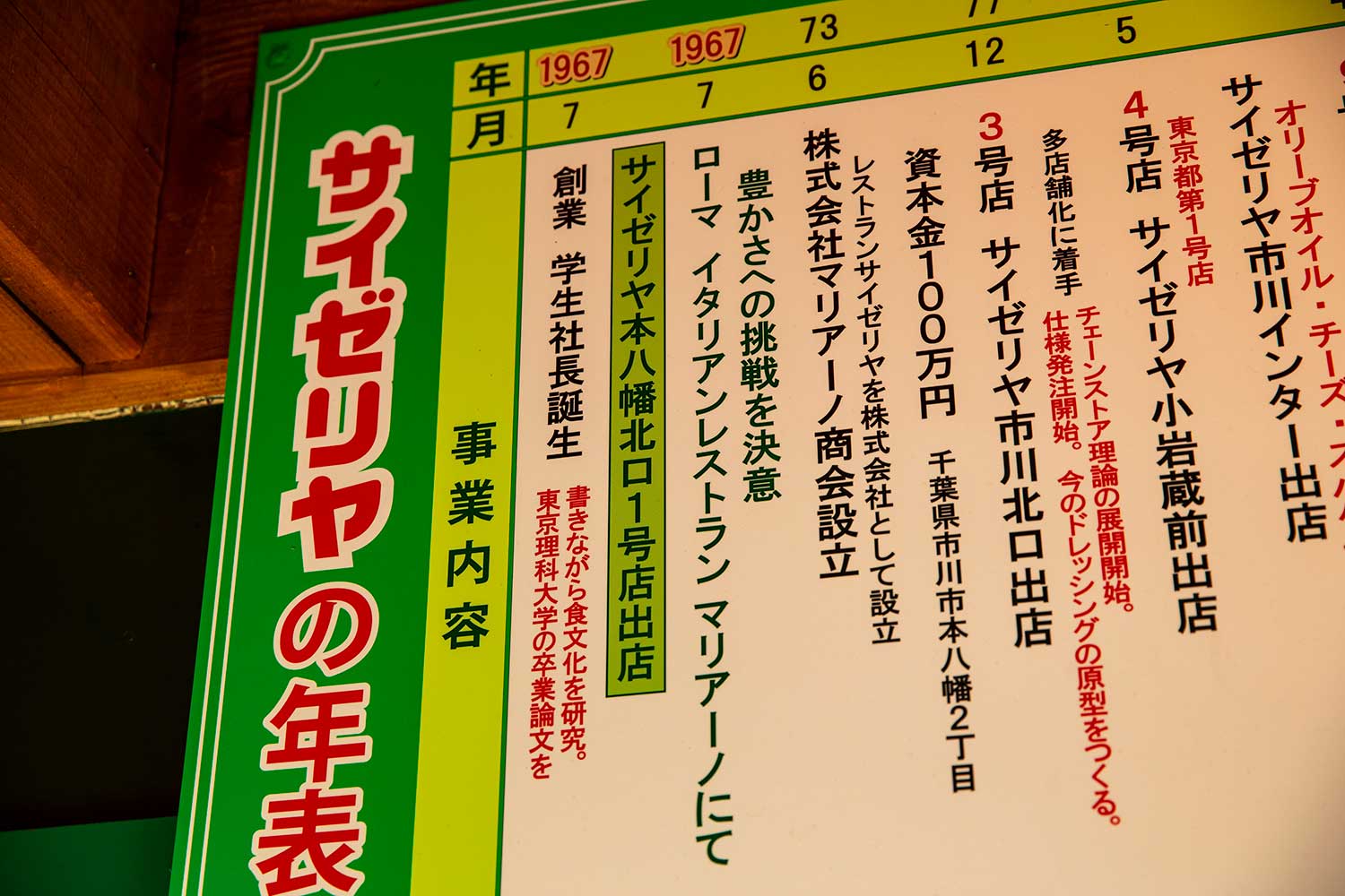 1967年、サイゼリヤ代表取締役会長の正垣泰彦氏は、この場所で洋食店『サイゼリヤ』を開業した。当時は大学に在籍し、卒論作成の真っ只(ただ)中。学生と起業家の二足の草鞋(わらじ)で商売を続けていたが、開店から9カ月後に客同士の喧嘩(けんか)がきっかけで店舗が全焼。しかし、周囲の助けを得ながら再建し、当時は珍しかったイタリア料理を学ぶため現地へ飛ぶ。老いも若きも豊かな笑顔にしてしまうイタリア料理の底知れぬ魅力に心打たれ、「日本で広める!」と、決意した。我々の知る『サイゼリヤ』はここから始まったのだ……!