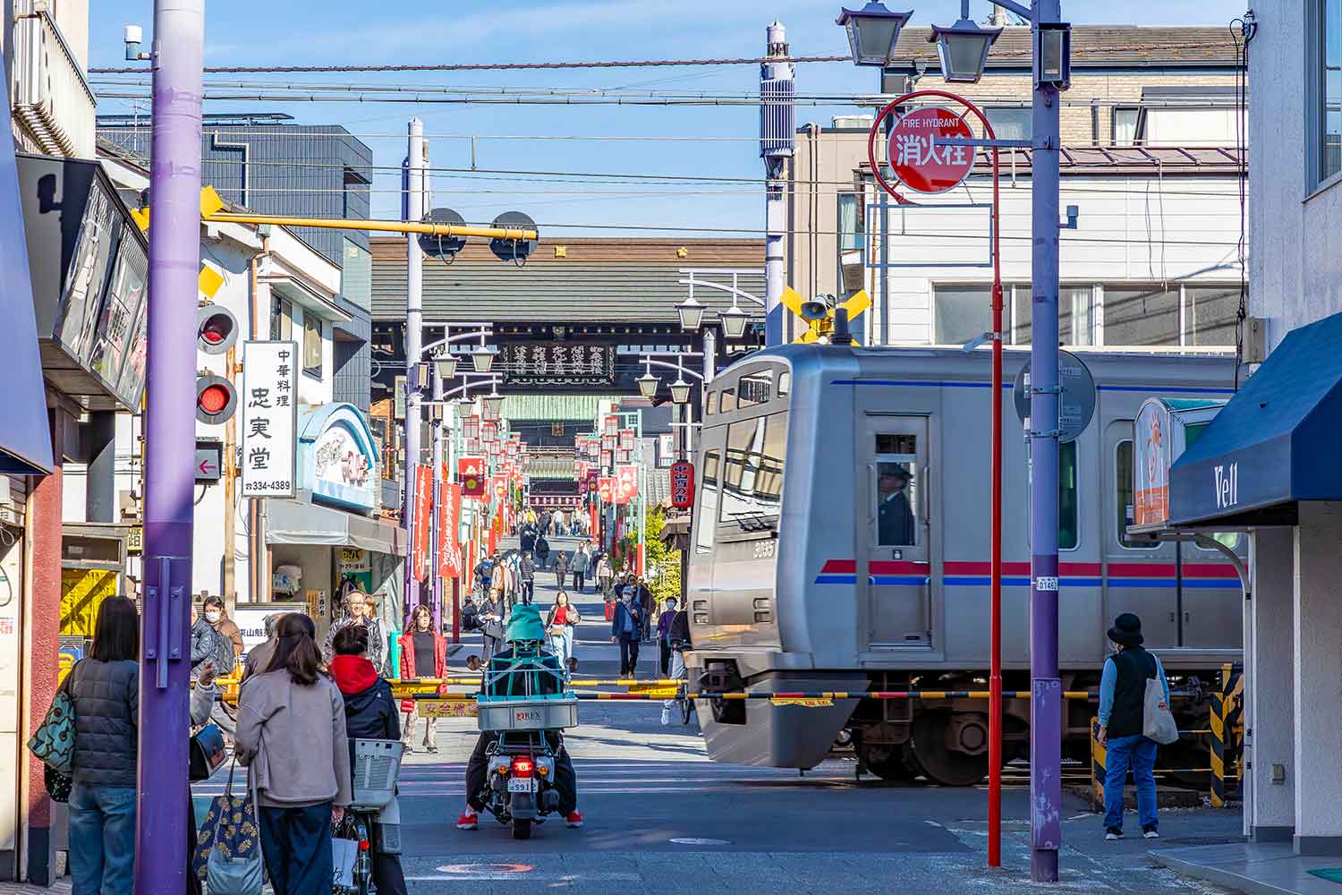 途絶えた行事の復活や骨董市の発案などで参詣者は戻ってきたものの「こんなに立派なお寺があるのに、そこへ向かう参道は通り過ぎるしかない状況でした」と田中さん。ほかの寺社を視察して参道がどうあるべきか考え、活性化のため方々に働きかけたという。2004年には法華経寺と商店会・自治会でまちづくり協議会が発足し、当時まだ珍しかった無電柱化や木製の看板に統一するなど景観の整備が進んだ。参道の商店に呼びかけてイベントも開催し、おひなまつりでは幼稚園や学校でつくったつるし雛(ひな)がすべての店に飾られて参道が春一色になる。