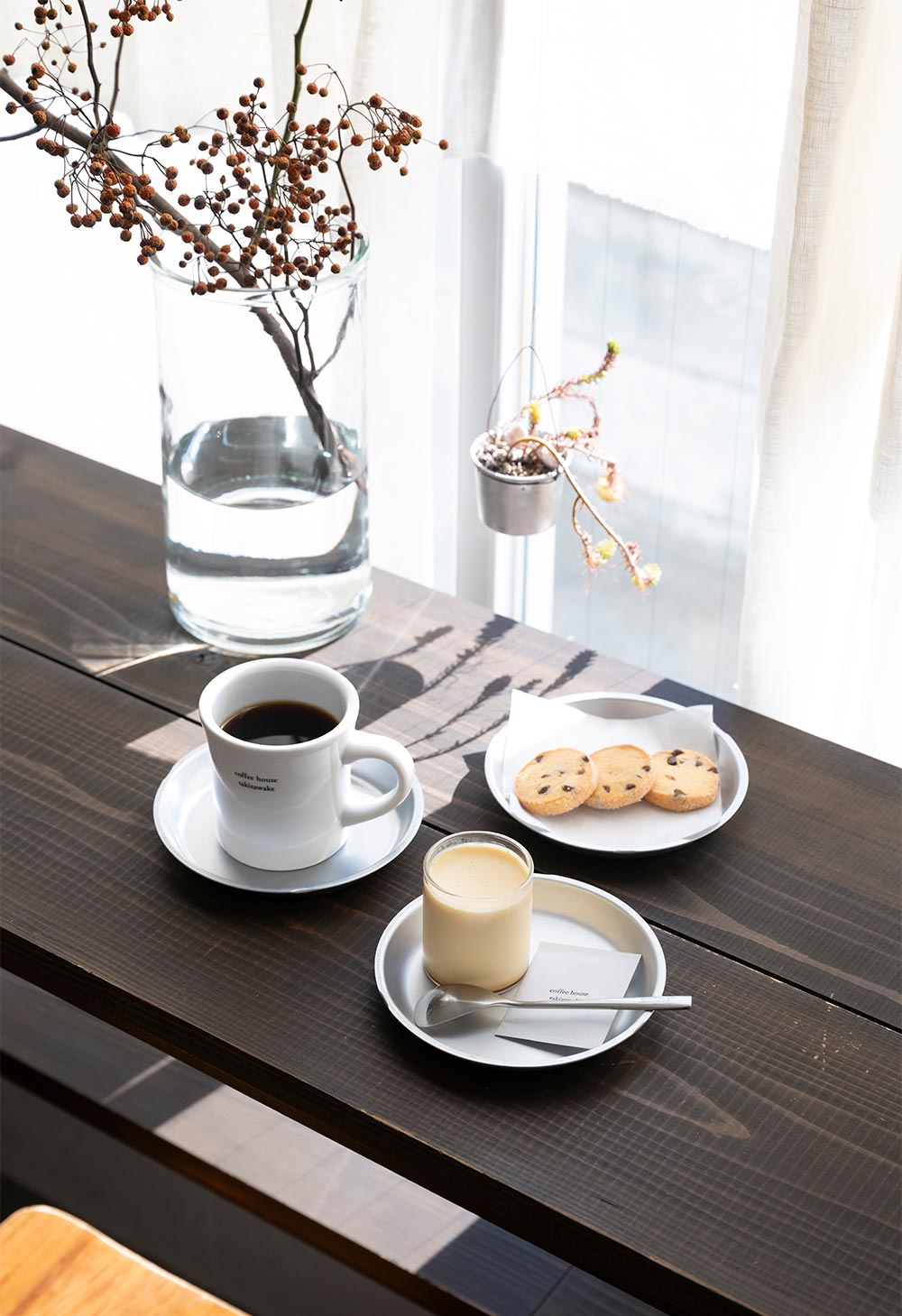 「人を笑顔にしたい」との思いで瀧澤昂大さんが2023年に開いたカフェは、思い出のある実家の部屋を8年かけてじっくりと、細部までこだわって改装。ガレージは半地下のような客室に、納戸は本棚に、押し入れは子供用の小部屋に……と聞けば納得、そして温かい気持ちになる。コーヒーは複数の焙煎所から取り寄せ、ハンドドリップで抽出。相性抜群のスイーツもぜひお供に。