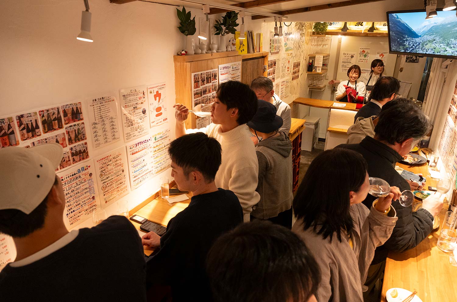 戦前創業の『ナダヤ酒店』に2019年にできた角打ち。倉庫を改装した秘密部屋のような店で飲みたいのはこだわりの生酒だ。全国約50の蔵元から仕入れ、中には希少な銘柄も。「-7℃の冷蔵庫で管理するので鮮度抜群です」と3代目の渡部知佳さん。旬の食材で和食シェフが手掛ける豊富な創作料理も、角打ちレベルを超えている!