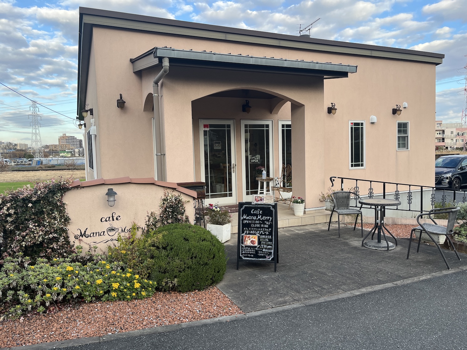 北柏駅から徒歩15分、畑に囲まれた静かな一角に『Cafe Mana Merry』がある。