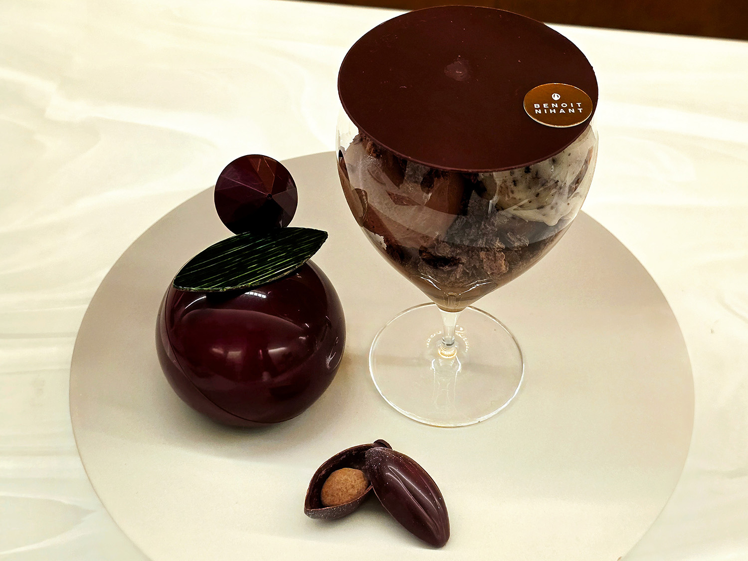 カカオパルプとカカオニブのソルベ、ショコラのアイスクリーム、フィヤンティーヌショコラ、キャラメルショコラムース、カカオパルプのジュレと、一層一層が味わい深いおいしさ。