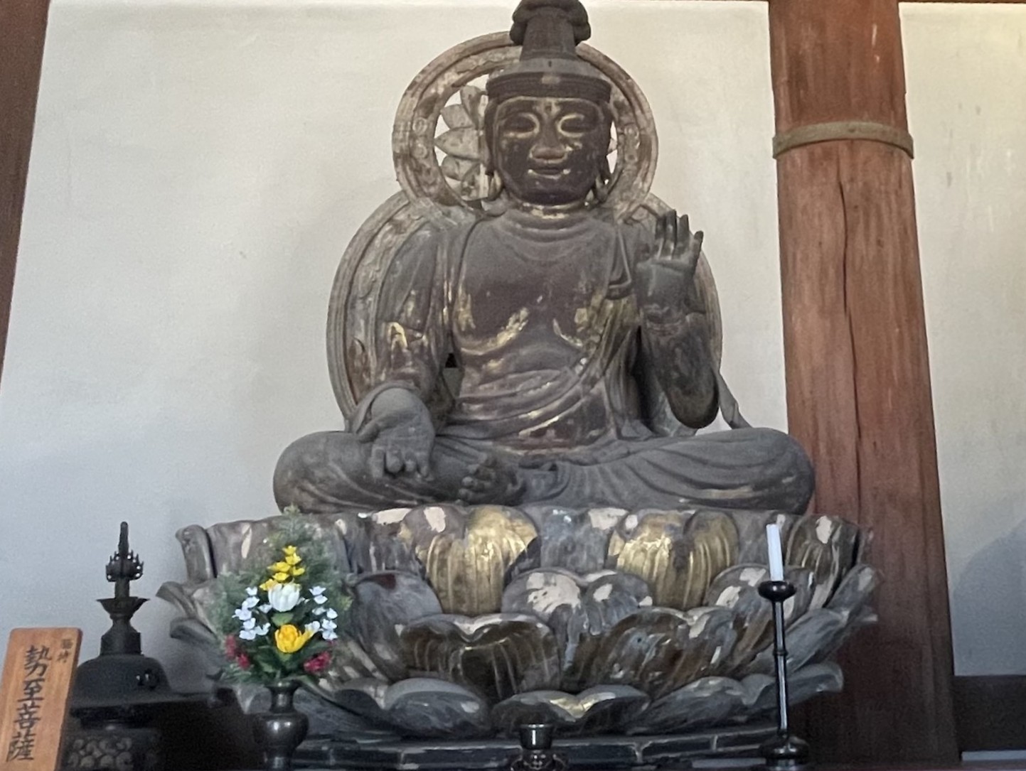こちらの勢至菩薩は、鎌倉時代作と推定されるもので、凛々しい表情が特徴的です。