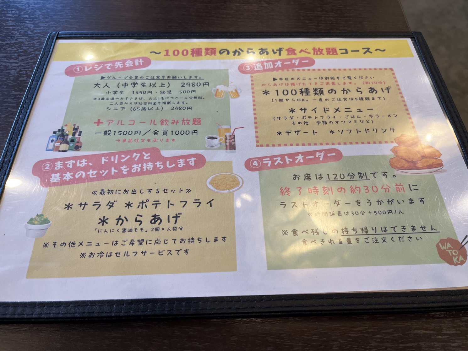 しかも、夜はオーダー制の食べ放題コース2980円(中学生以上。小学生1490円、幼児500円、シニア〈65歳以上〉2480円。※要予約)を行っており、テイストは100種類を用意! からあげ好きにはたまらない内容だ。