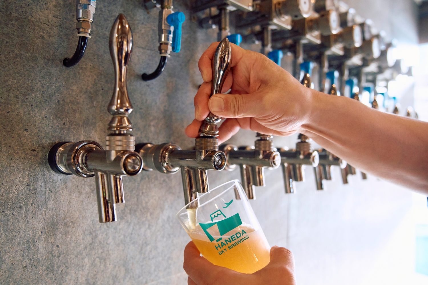 後味がすっきりとしたペールエールは柚子のフルーティさ×味噌のコク。そして隠し味には大田区が誇る海苔。訪れた街の味を楽しめるなんて、散歩の醍醐味そのもの。店内の醸造所でつくられたビールは、新鮮なままタップをつたって注がれる。