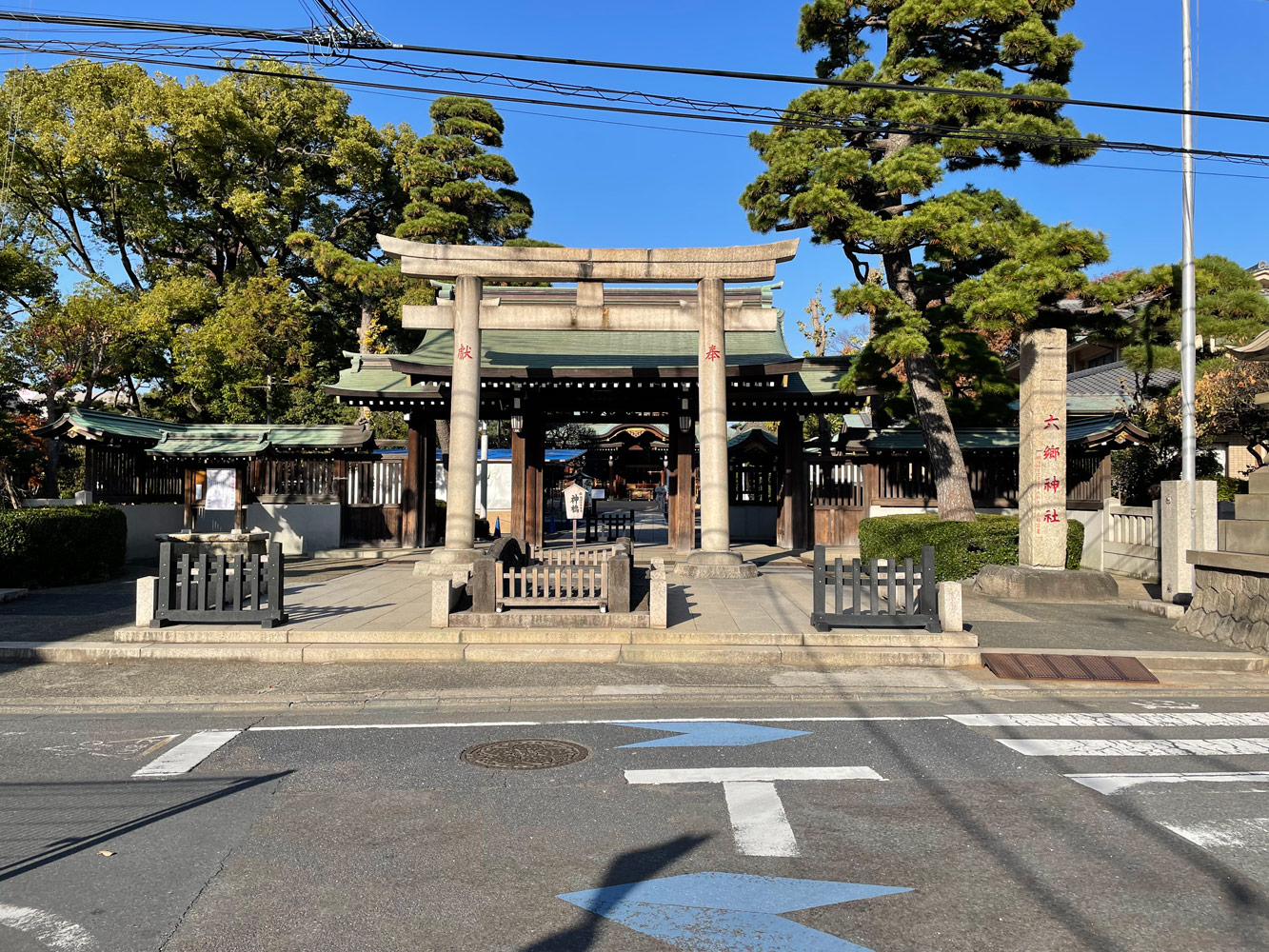 そのまま雑色駅を過ぎ、第一京浜を渡ると、水門通り商店街が続く。途中で左に道曲がり、道を南西方面へとまっすぐ進むと、やがて六郷神社が見えてくる。