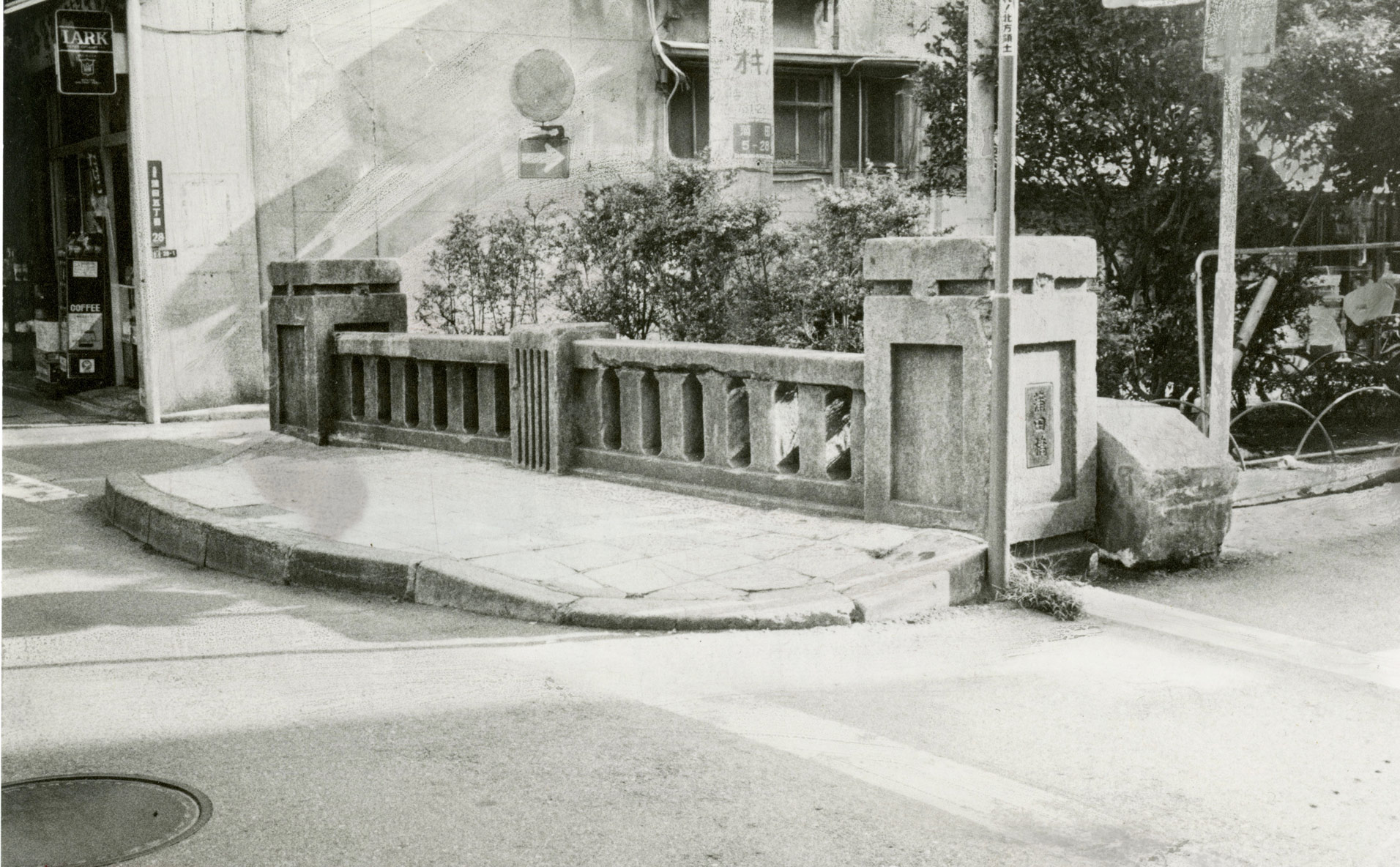 呑川沿いにスマホをいじりながら道の端に佇む人たちがいる。自転車の荷台に黒く大きなカバンを置いているので、きっとフードデリバリーの配達員の人たちが待機しているのだろう。その配達員の人たちがいる菖蒲橋の少し下流に、古い橋の親柱のモニュメントが設置されていた。