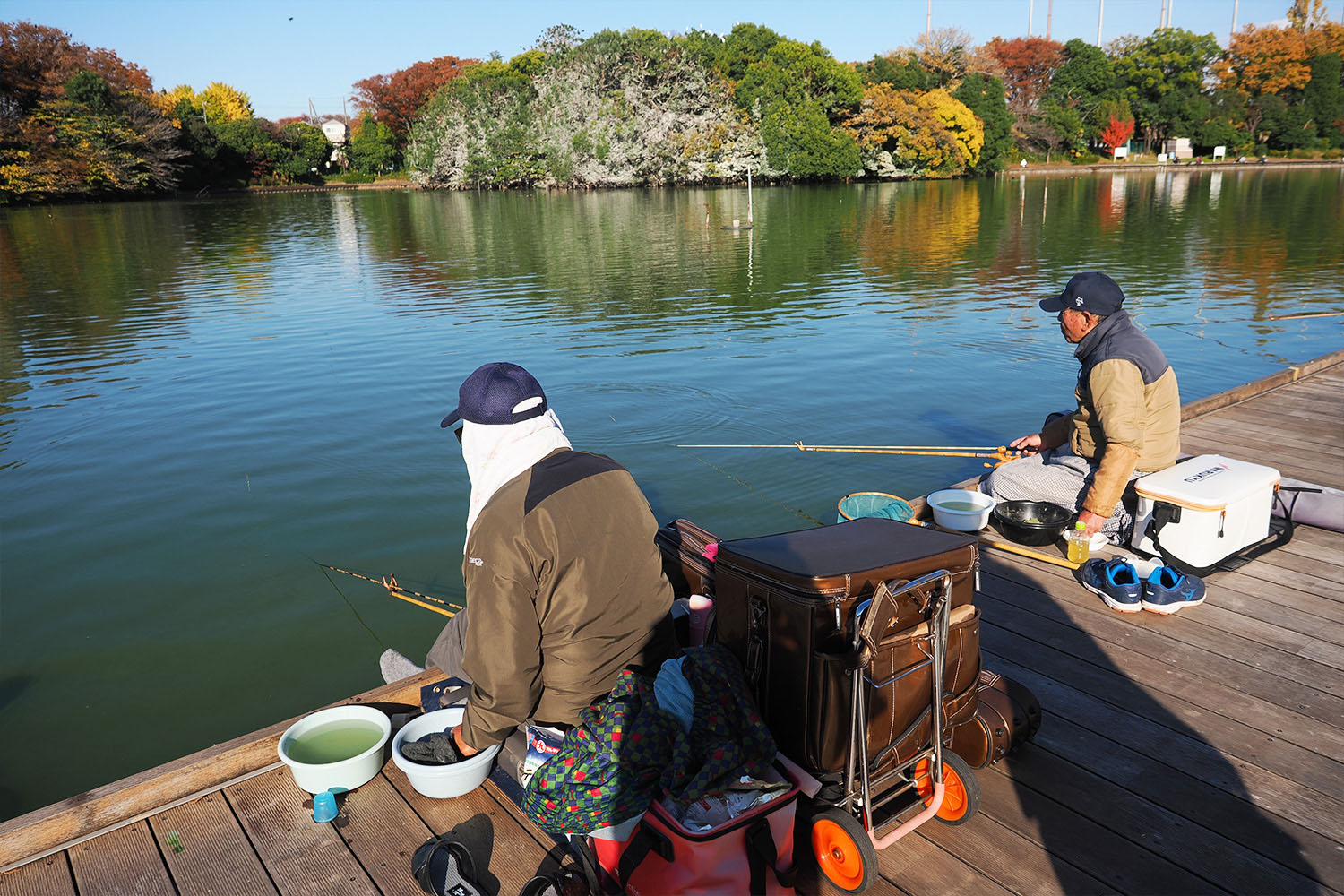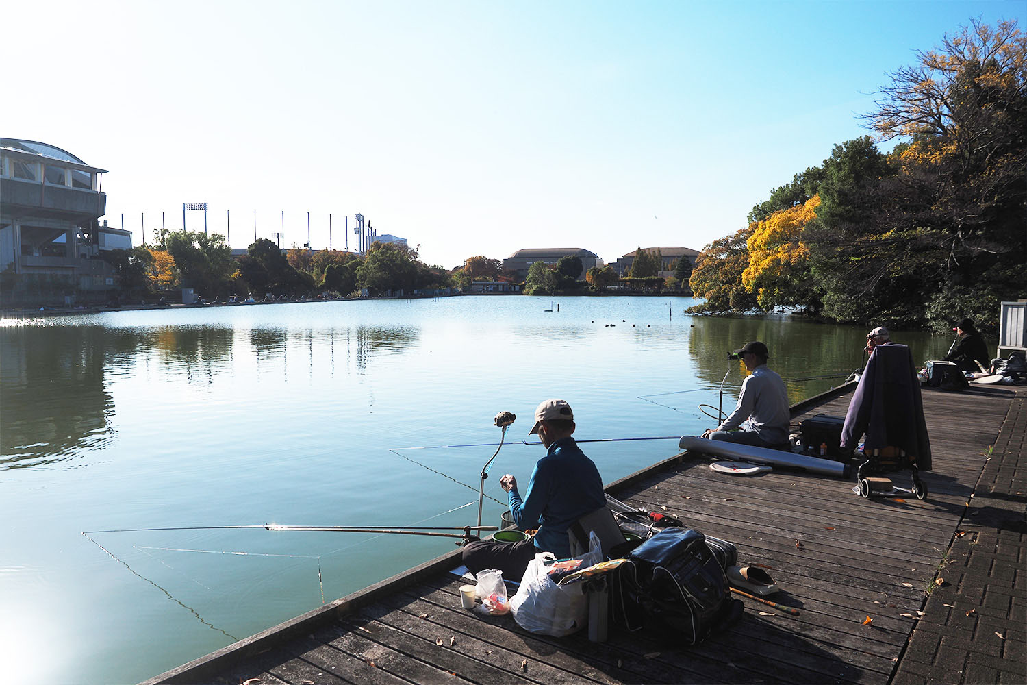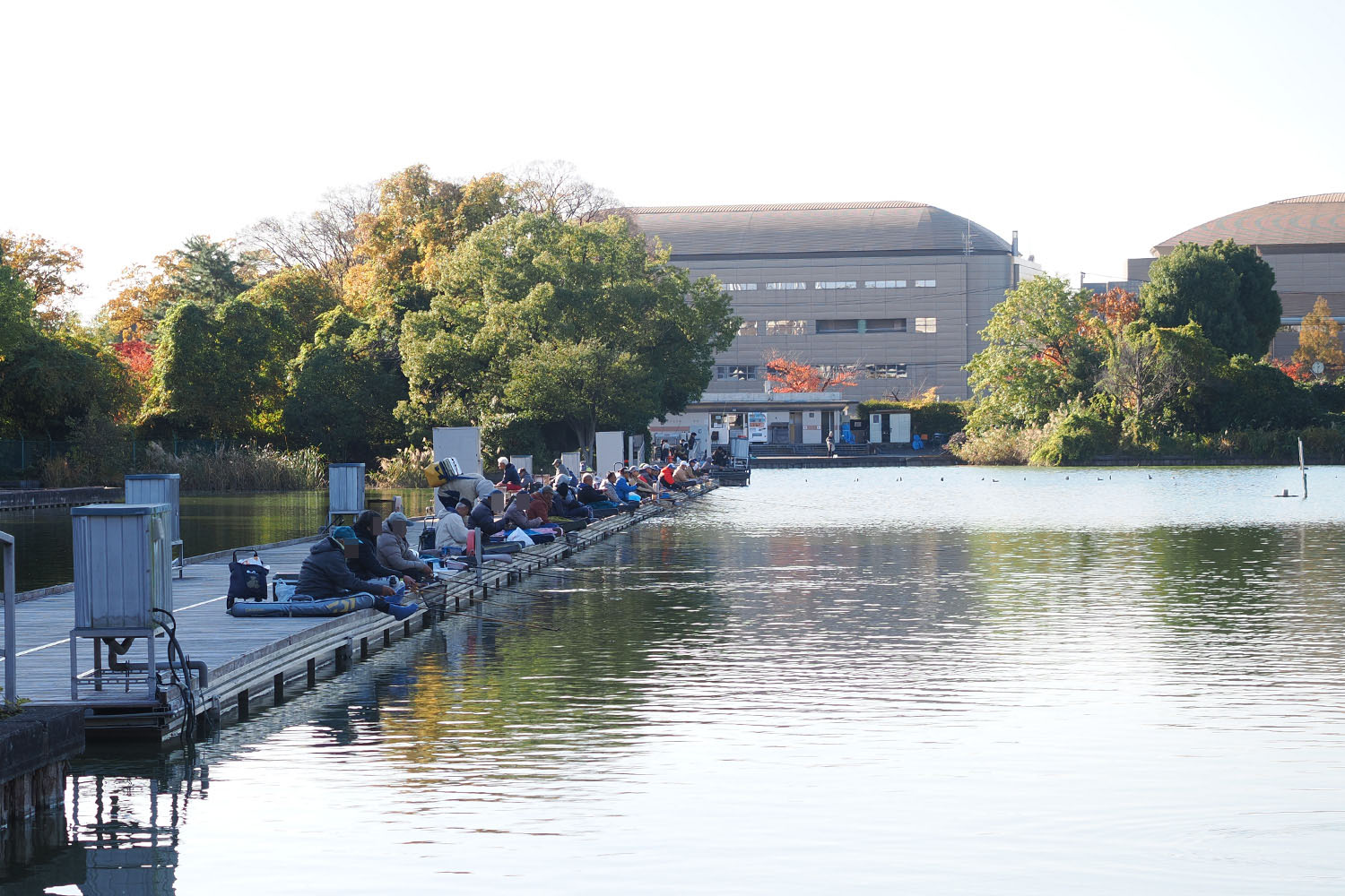 桟橋から向こうは小魚ではなくヘラブナ狙いの玄人たちが集まっていた。それまでののびのびとした空気感とは違い、音を立てたら怒られるのでは、と思うくらい緊張感あるエリアだった。