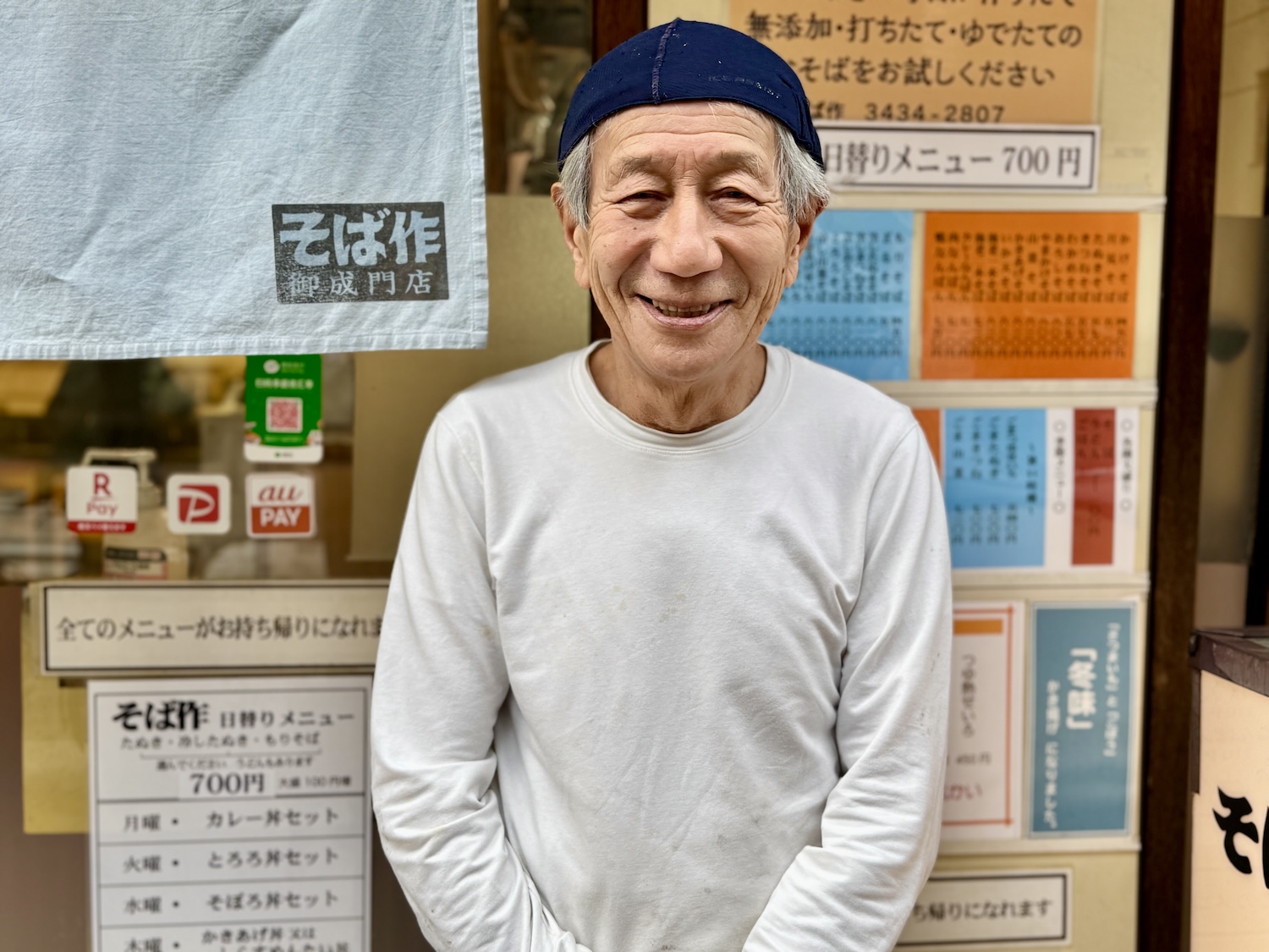 『そば作』は一時、新橋と神田に支店を出していたが、今は御成門の店のみ。ここで前田さんは40年近く、そばを作り続けてきた。開店当時、毎日のように通っていた常連客が定年退職を迎え、あいさつに来てくれることもあるという。ある常連客から「ここのそばを食べていたおかげで、健康に過ごすことができました」と言われ、ひどくうれしかったそうだ。