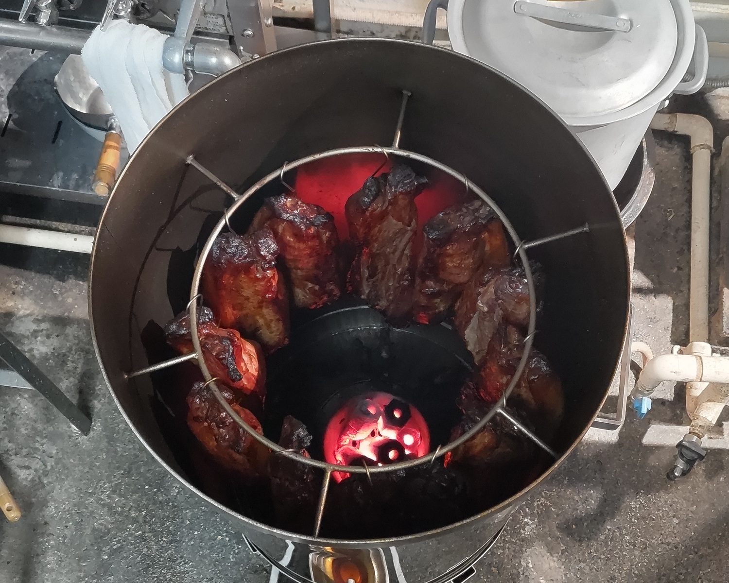 岩中豚の肩ロース焼豚と梅里豚のバラ焼豚は、どちらも1日以上タレに漬け込んでから当日に吊るし釜の炭火で調理している。銘柄豚の柔らかい肉質と、旨味が濃縮されたような味わいに思わずほれぼれ。また鶏チャーシューのジューシーな食感は、低温調理ならではだ。