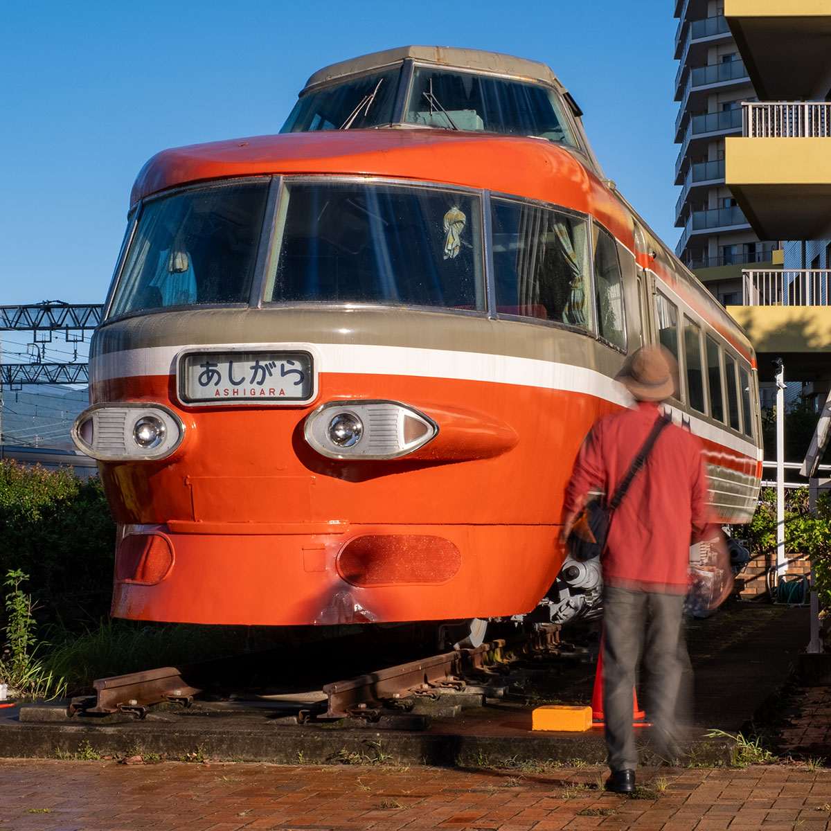 せっかくなので、町を離れる前に最寄り駅である開成駅を訪れ、駅前の公園に置かれた「ロンちゃん」にお別れのあいさつをするとしよう。懐かしい気分で朱色の車体に近づいたところ、小田急の新型特急ロマンスカーがすぐ脇を颯爽と駆け抜けていった。
