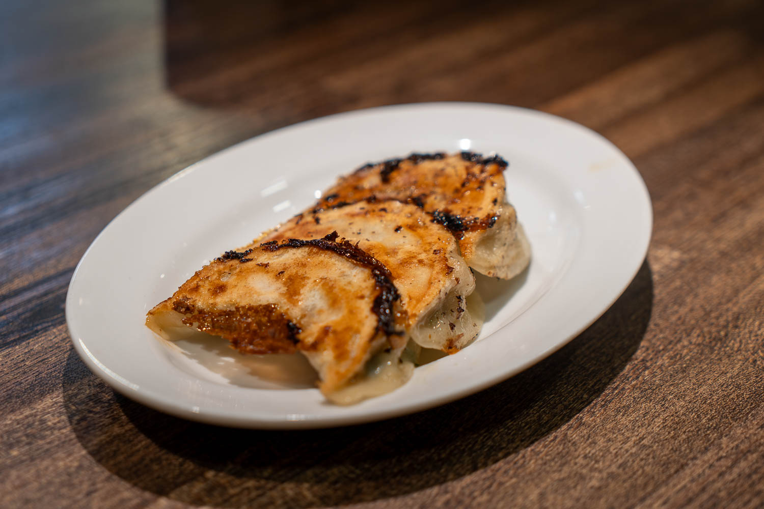 店名を『背脂中華そばと餃子 福鳳』とするほど、餃子にもこだわりがある。セントラルキッチンで皮から自家製。豚挽き肉にニラなどの香味野菜も複数種類を加えて、さっぱり食べられるように工夫している。